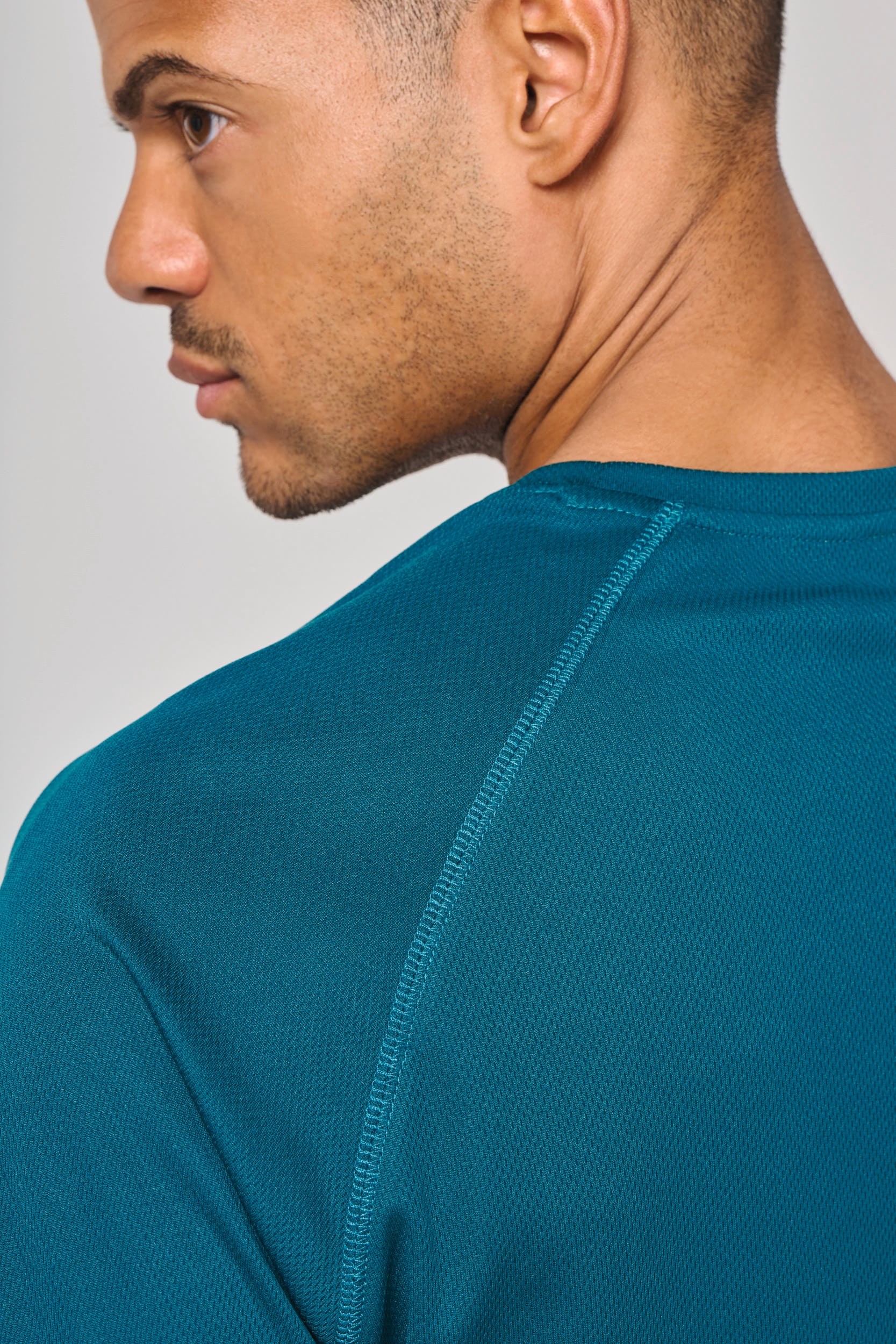 100% polyester. Gemaakt van 100% gerecycled polyester. Lichte en sneldrogende stof. Rechte snit. Ronde halsopening met contrasterende nektape aan de binnenkant. Raglanmouwen met toon op toon stiksels. Dubbel stiksel aan halsopening, mouwuiteinden en onderkant kledingstuk. Buisvormig aan de onderste zoom en aan het mouwuiteinden. Afscheurbaar merklabel voor eenvoudige personalisatie.